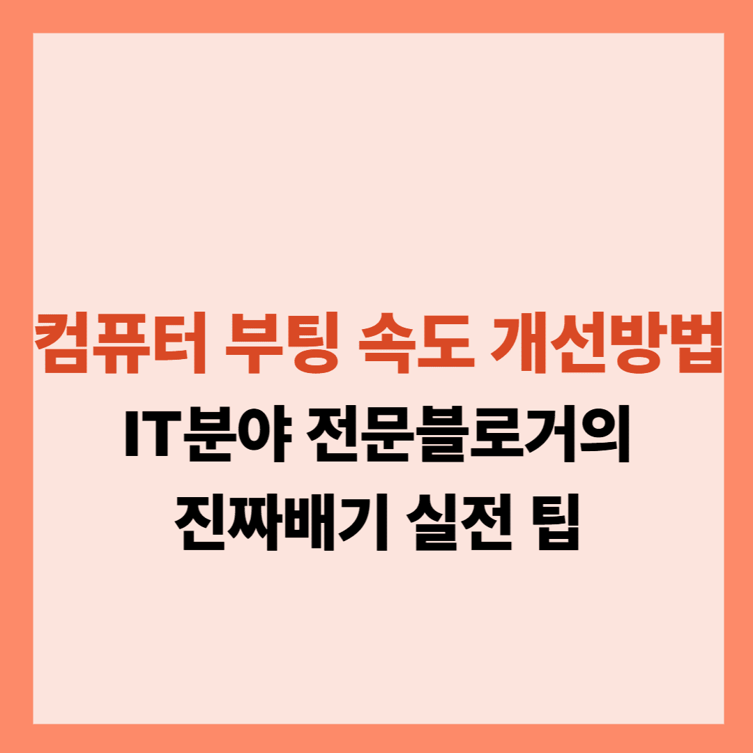 부팅 속도 개선의 실제 경험담